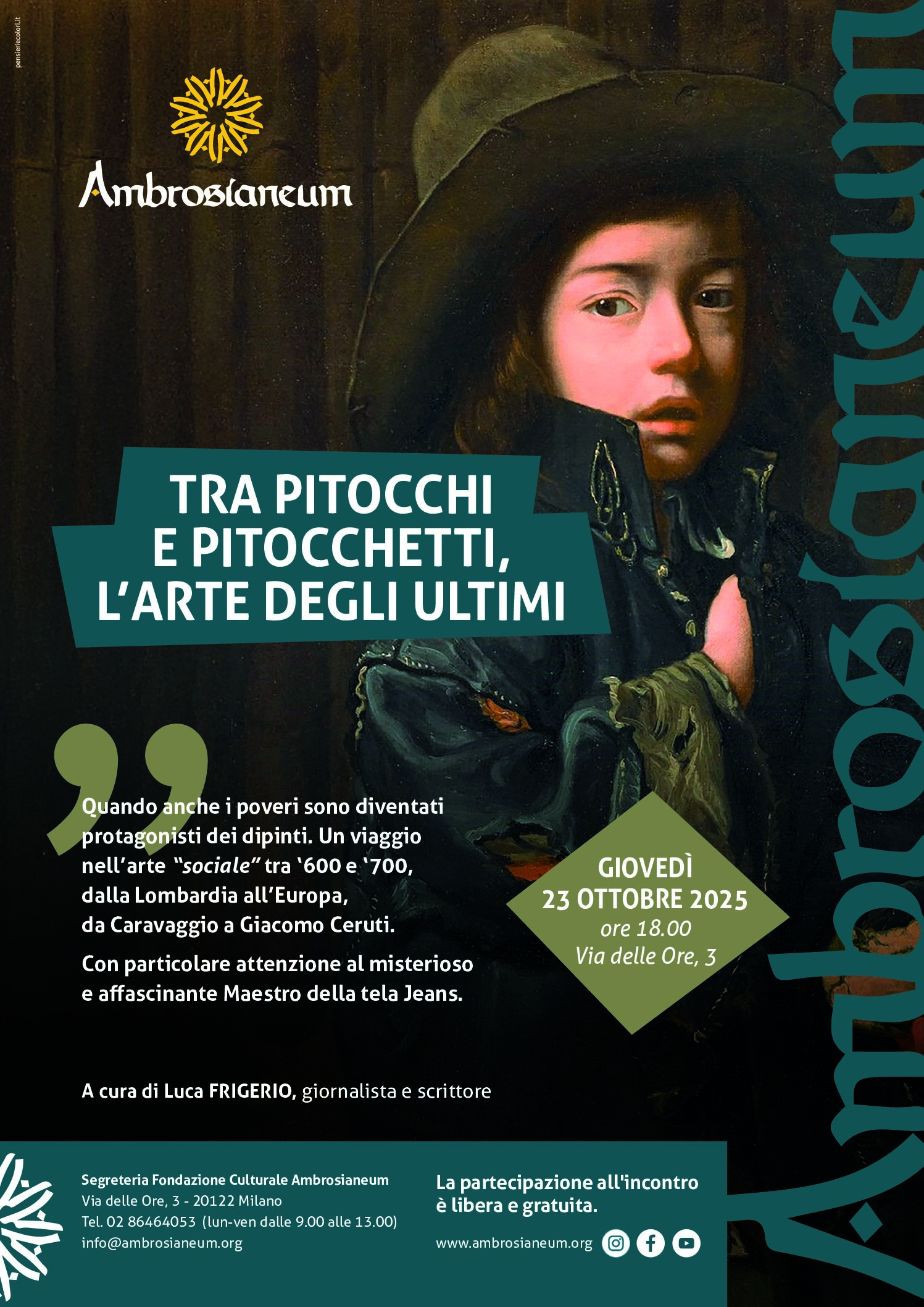 Luca Frigerio, giornalista e scrittore, ci guida in un viaggio nell’arte sociale tra Seicento e Settecento, dalla Lombardia all’Europa, da Caravaggio a Giacomo Ceruti. Con particolare attenzione al misterioso e affascinante Maestro della tela Jeans.